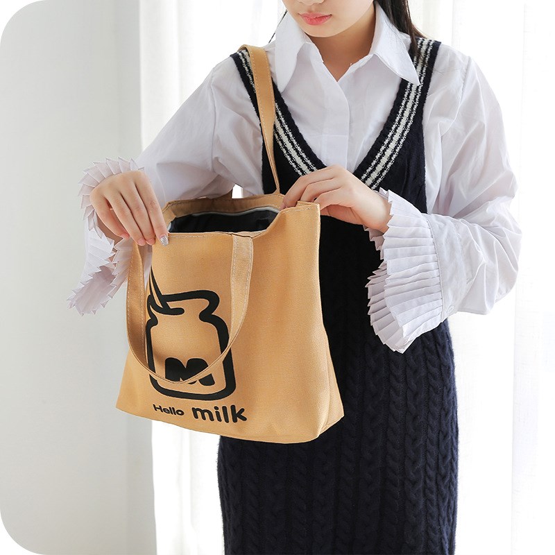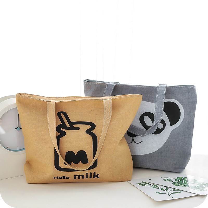 / 帶拉鏈大號袋子女學生校園裝書手提帆布書包韓版文藝購物袋小方包