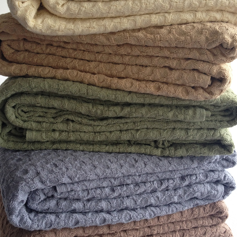 白色莫奈純棉十字線毯子春秋夏空調毯蓋毯休閑毯沙發巾出口品質