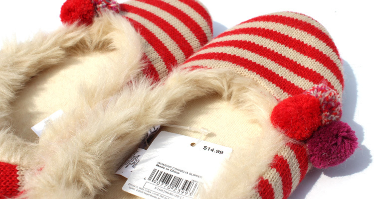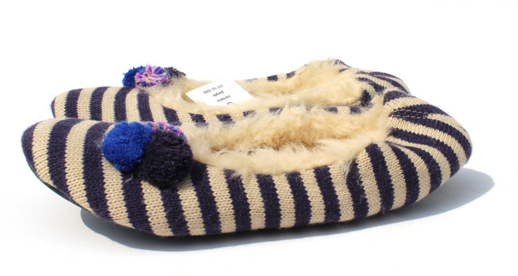 / [白色莫奈]毛絨絨*超值明快彩條加絨出口原單大碼家居鞋