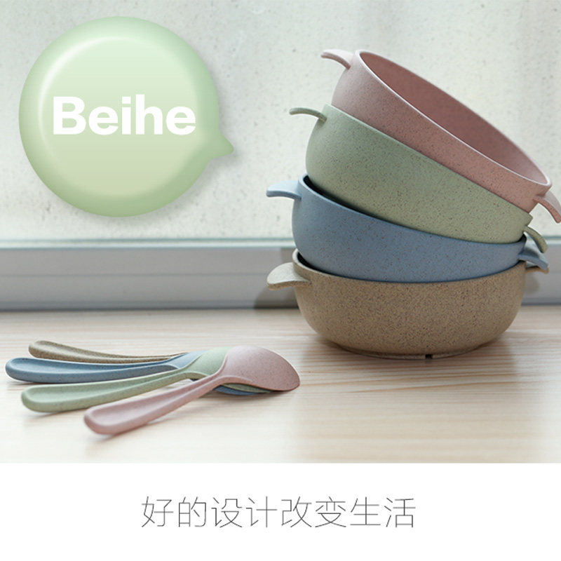 貝合兒童隔熱防燙飯碗小麥碗面碗米飯碗大號湯碗餐具套裝帶防燙耳