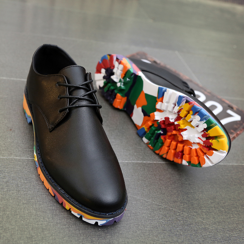 / 新品韓版潮流休閑鞋男鞋個性彩色底走秀板鞋男發型師夜店皮鞋