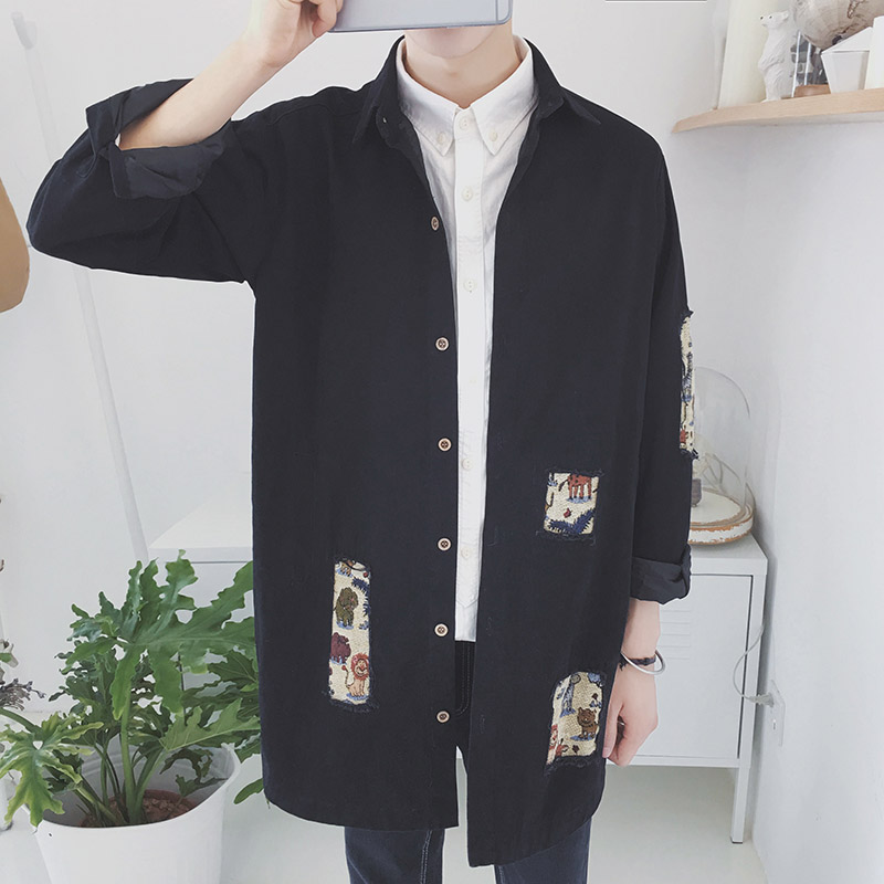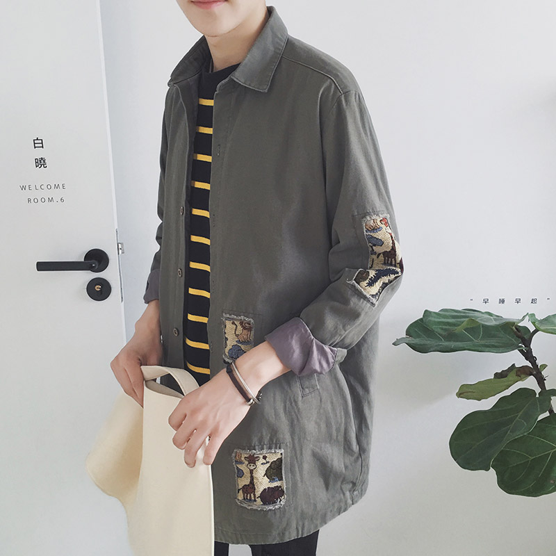 / 秋季中長款風衣男休閑男士夾克大衣韓版潮衣服男潮流外套原宿男裝