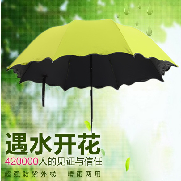 兩用晴雨傘防曬黑膠傘太陽傘女三折傘防紫外線折疊雨傘遇水開花傘