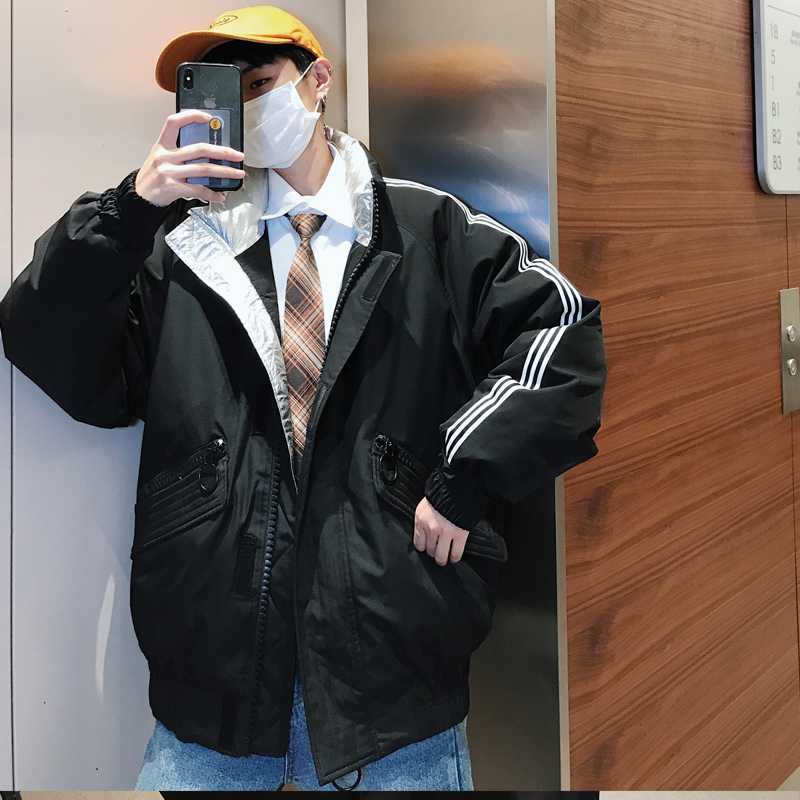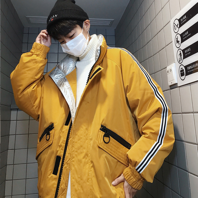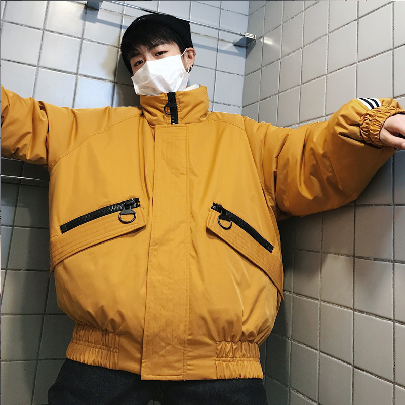 文藝男女2018新款冬季男士工裝外套蒙口羽絨服潮流短款冬裝中長款