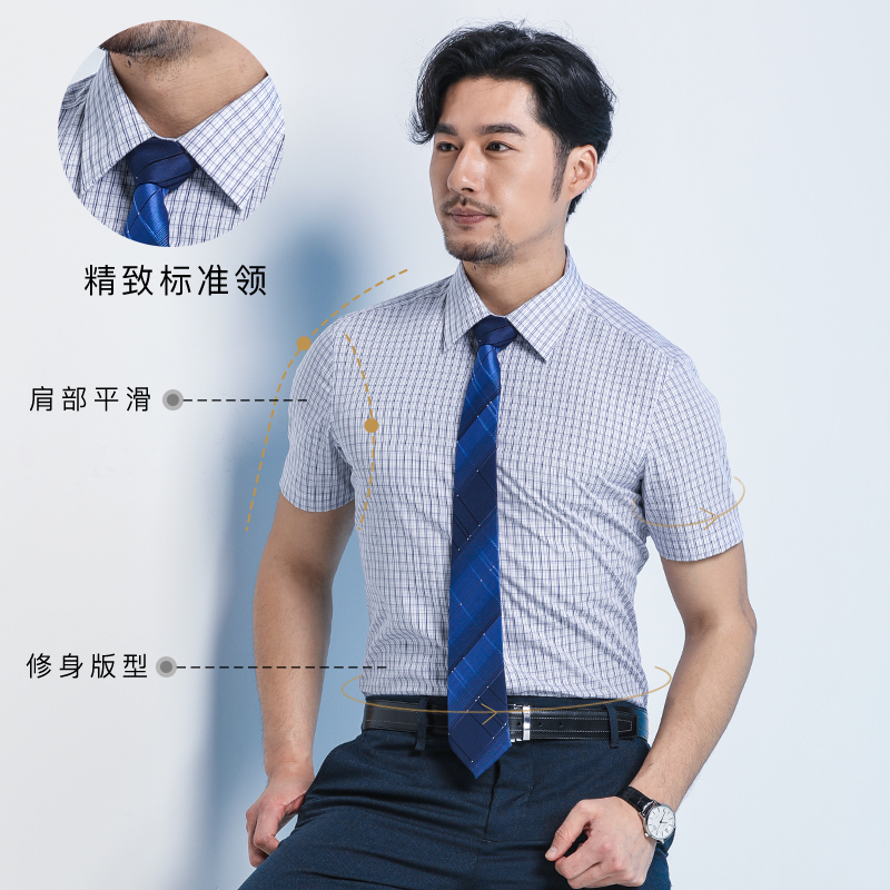 夏季純棉格子襯衫男士短袖韓版修身青年休閑時尚襯衣薄款寸衫男潮