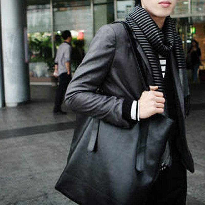 / 原創韓版時尚簡潔PU皮單肩包男士手提休閑包大容量包潮包