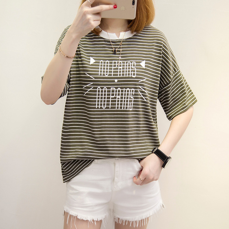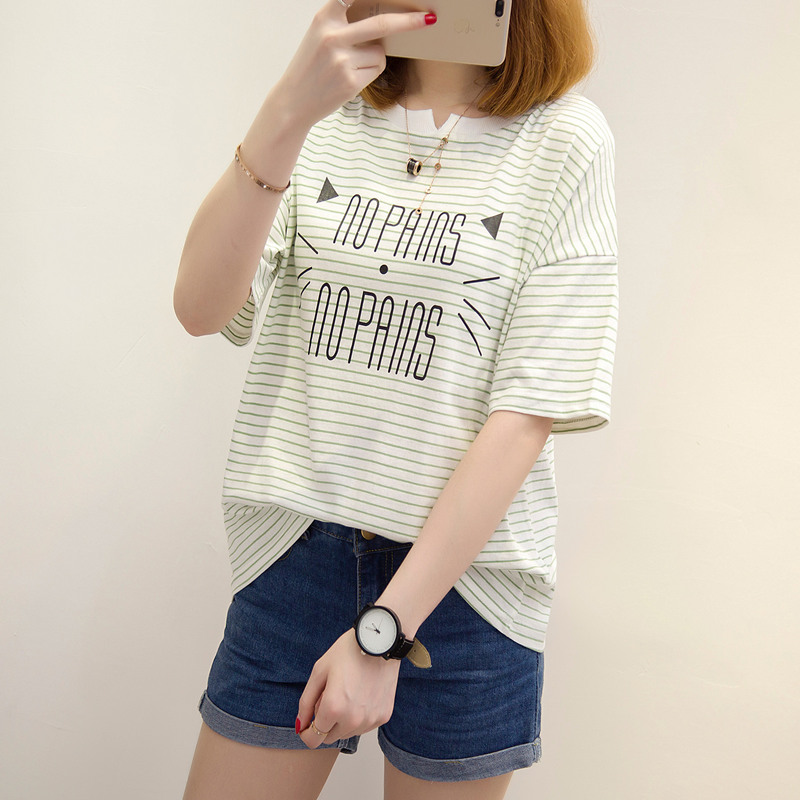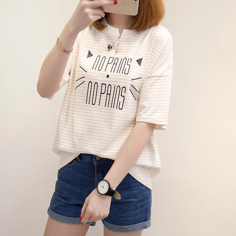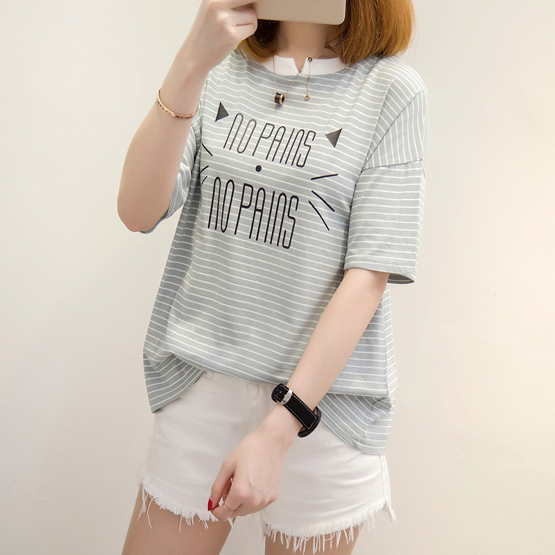 / 條紋t恤女衣夏夏裝新款圓領短袖女體恤衫韓版寬松百搭上衣女