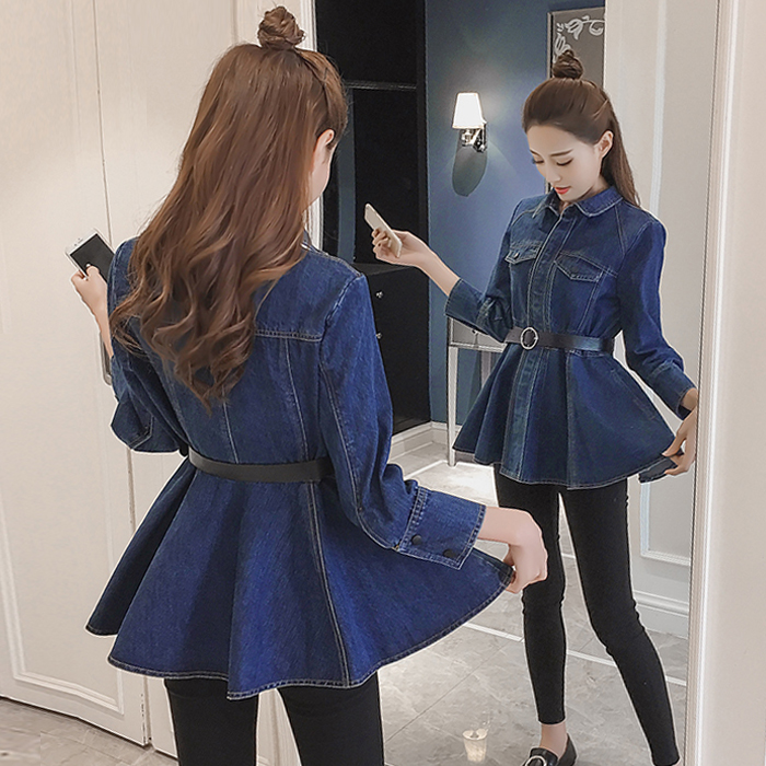 / 2017秋裝新款韓版時尚翻領九分袖開衫上衣女裝收腰顯瘦牛仔短外套