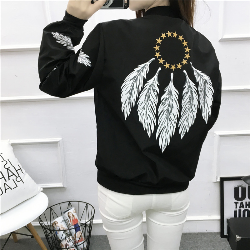 春季新品韓國原宿風飛行員羽毛印花情侶棒球服寬松百搭夾克外套女