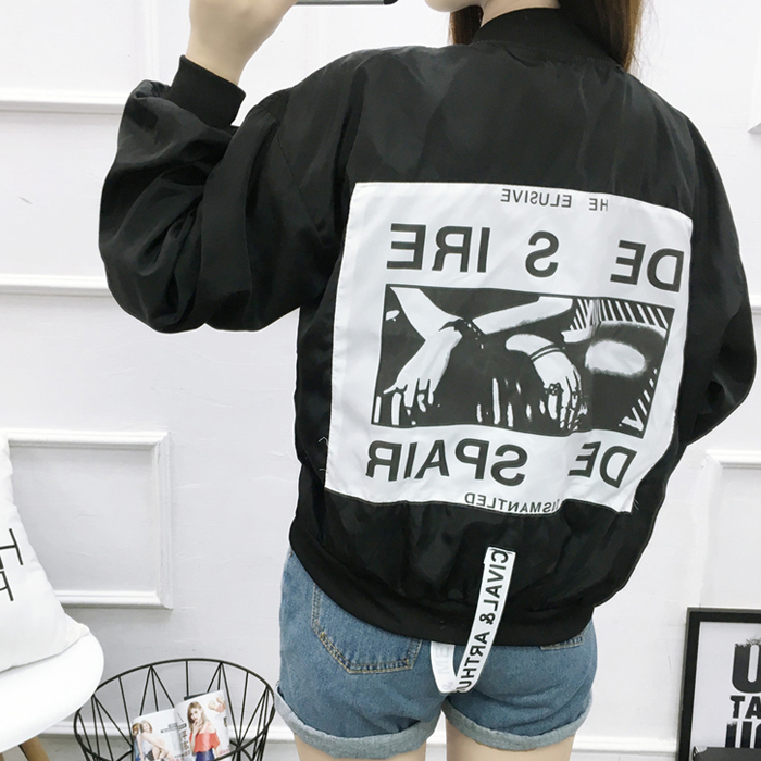 / 春季新品韓國原宿風飛行員羽毛印花情侶棒球服寬松百搭夾克外套女