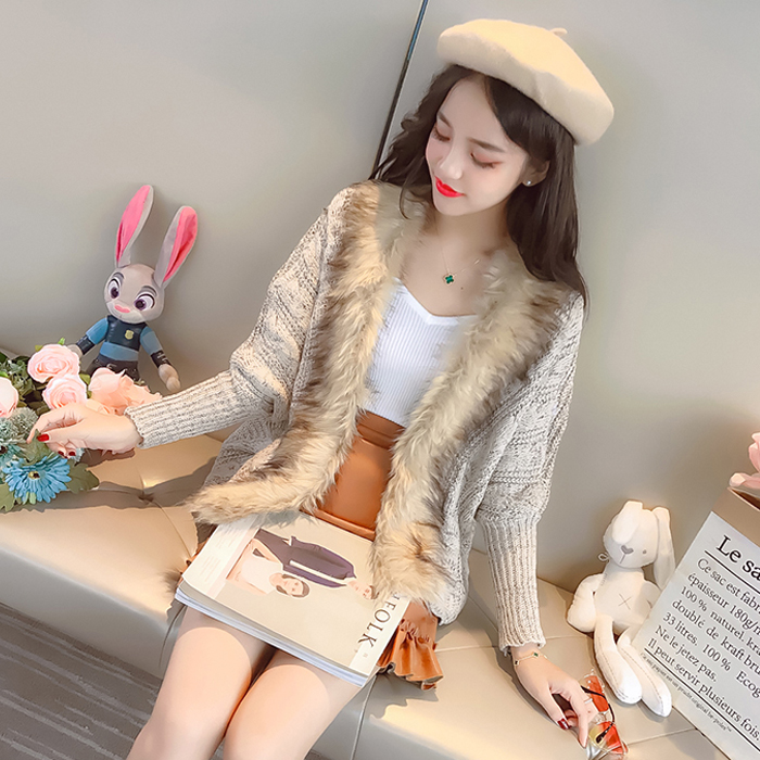 秋裝新款潮2017韓版時尚毛領針織開衫百搭寬松蝙蝠袖毛衣外套女裝