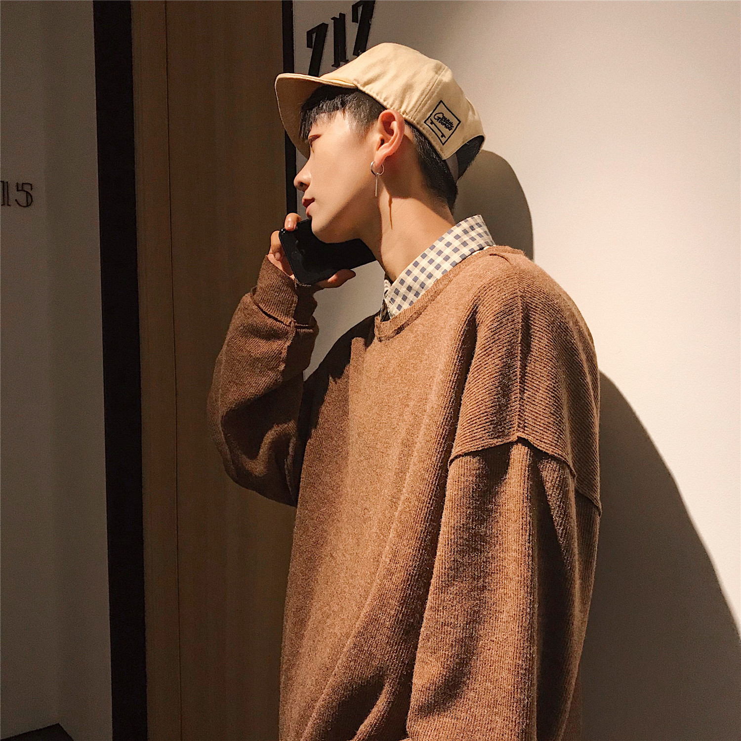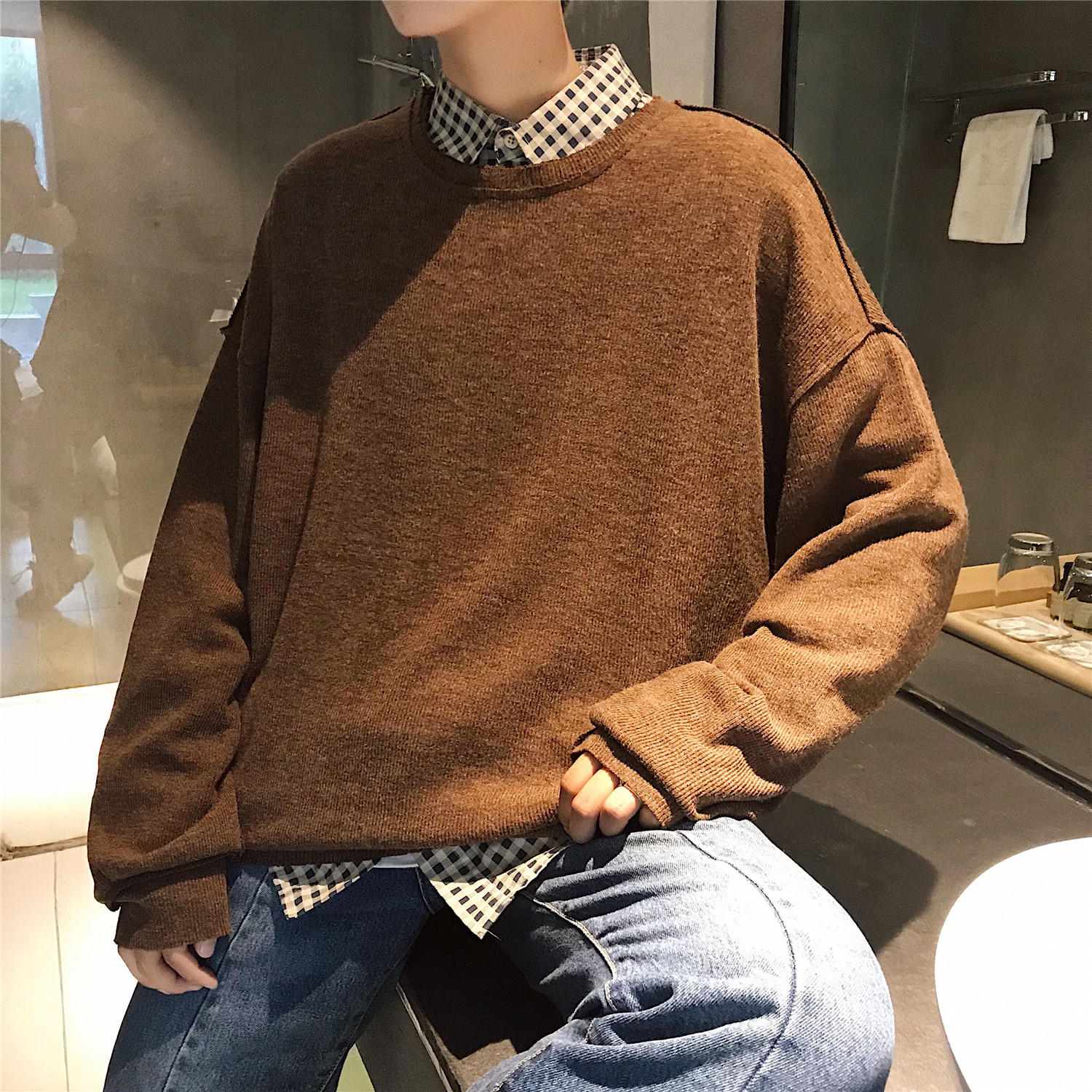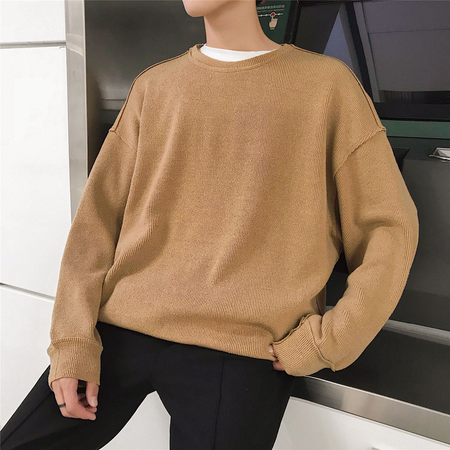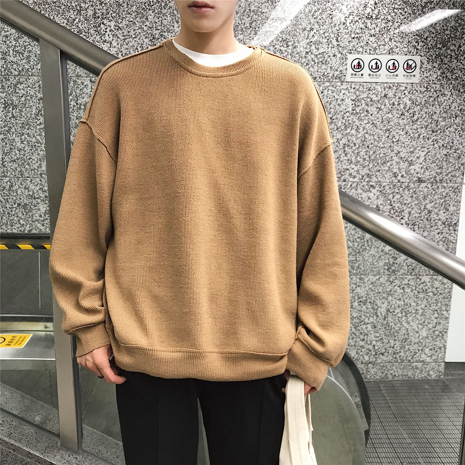 文藝男女店秋季韓版毛衣男士潮流chic早秋針織衫圓領套頭外套男
