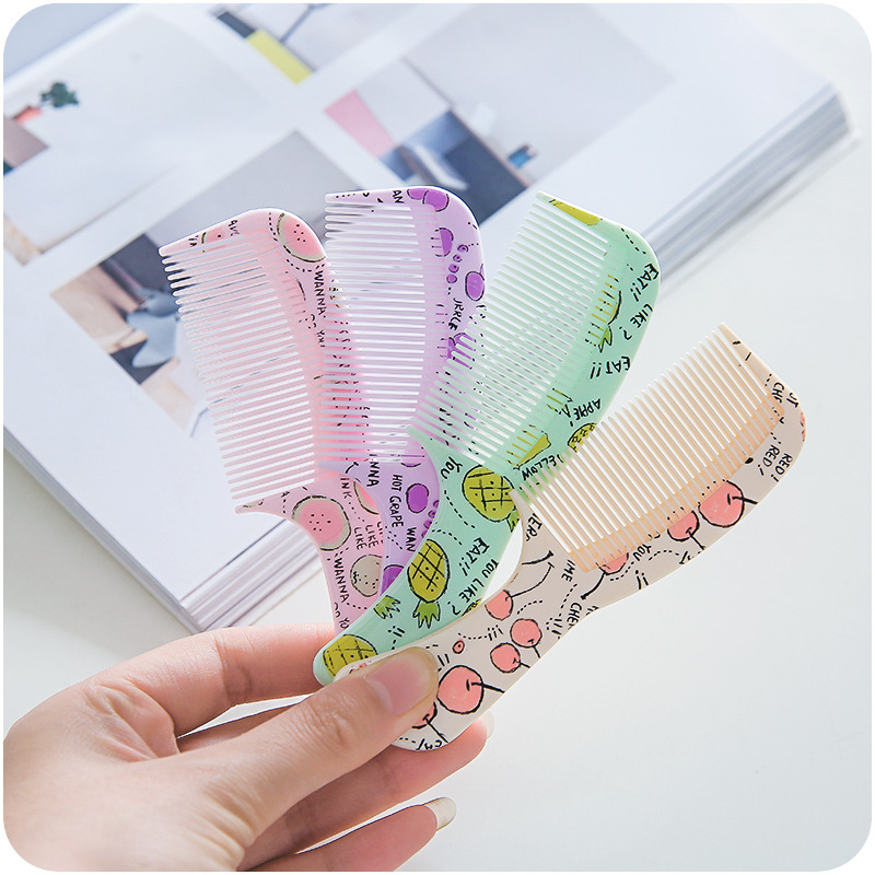 / 弧形卷發吹直發劉海內扣造型梳美發加厚塑料梳齒梳子卡通水果印花