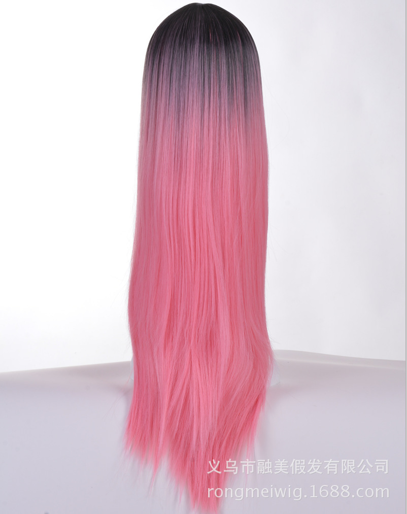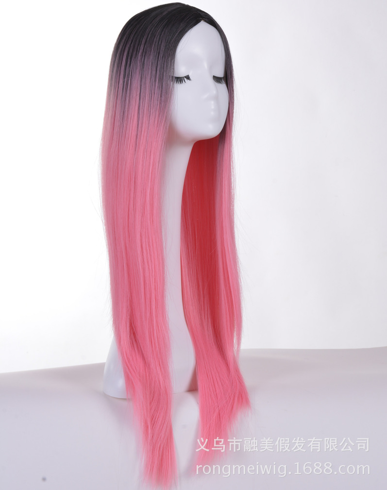 跨境貨源歐美假發女 中分發型 染色漸變假頭套玫瑰網廠家現貨代發