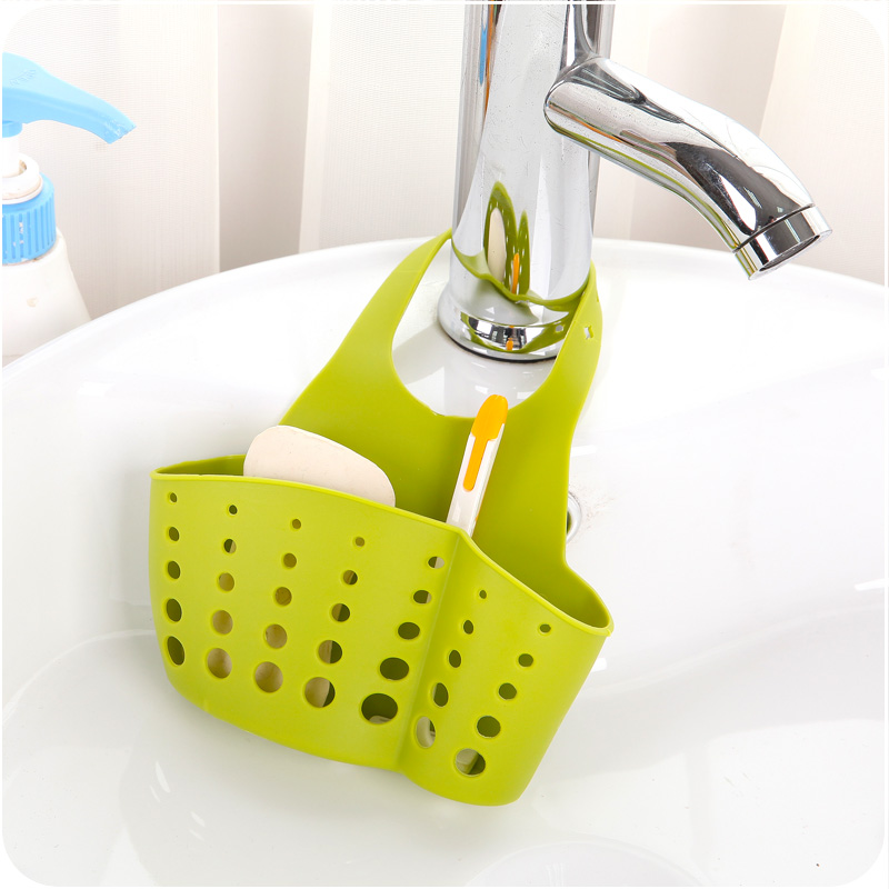 可調節按扣式水槽收納掛籃PVC 廚房置物架水龍頭海綿瀝水籃架純色
