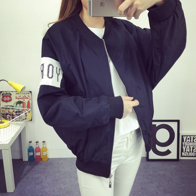 2017韓版春秋情侶學院風棒球服字母寬松BF蝙蝠袖原宿學生短外套女