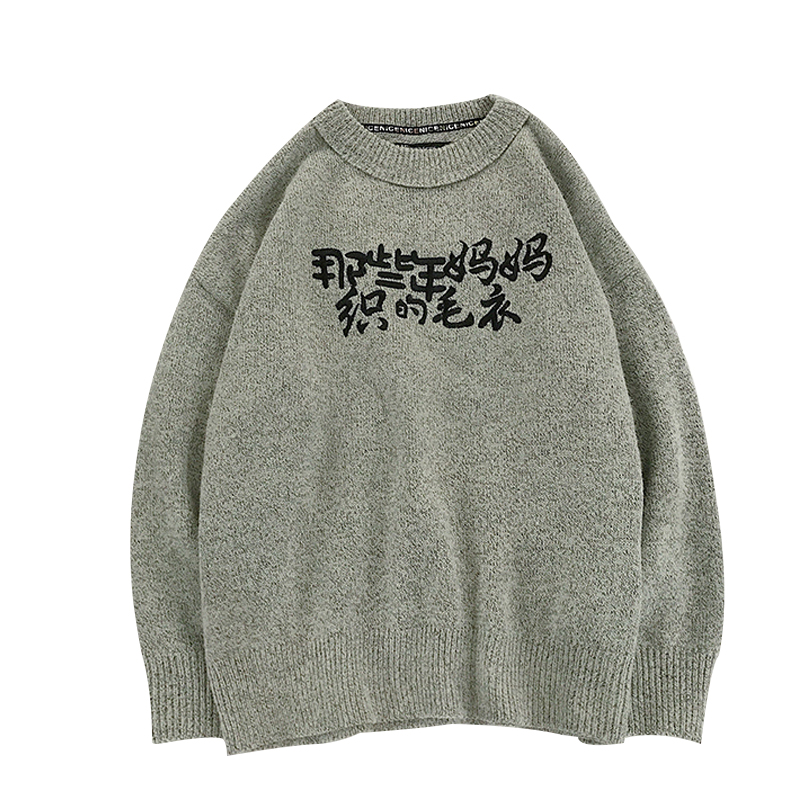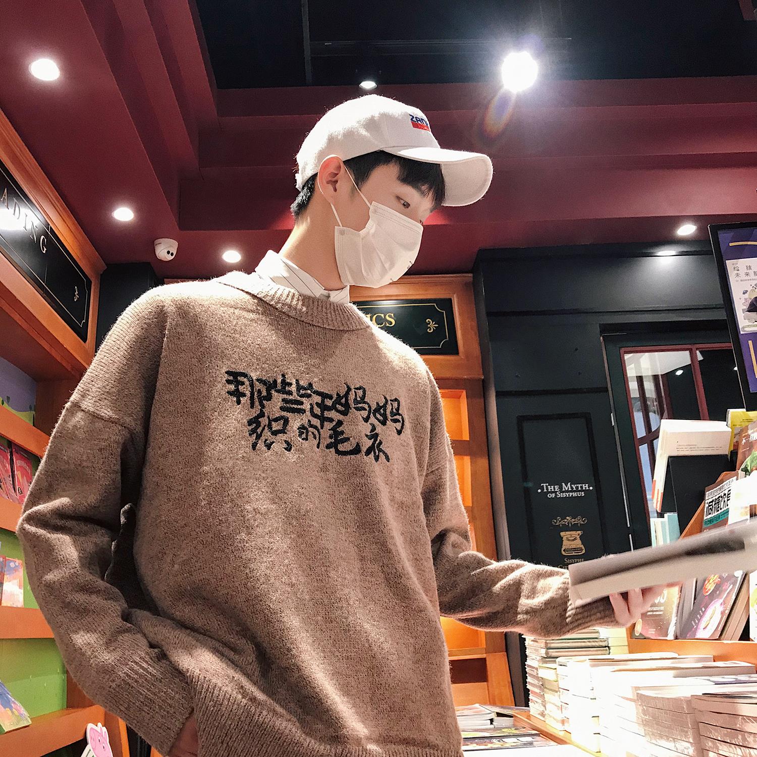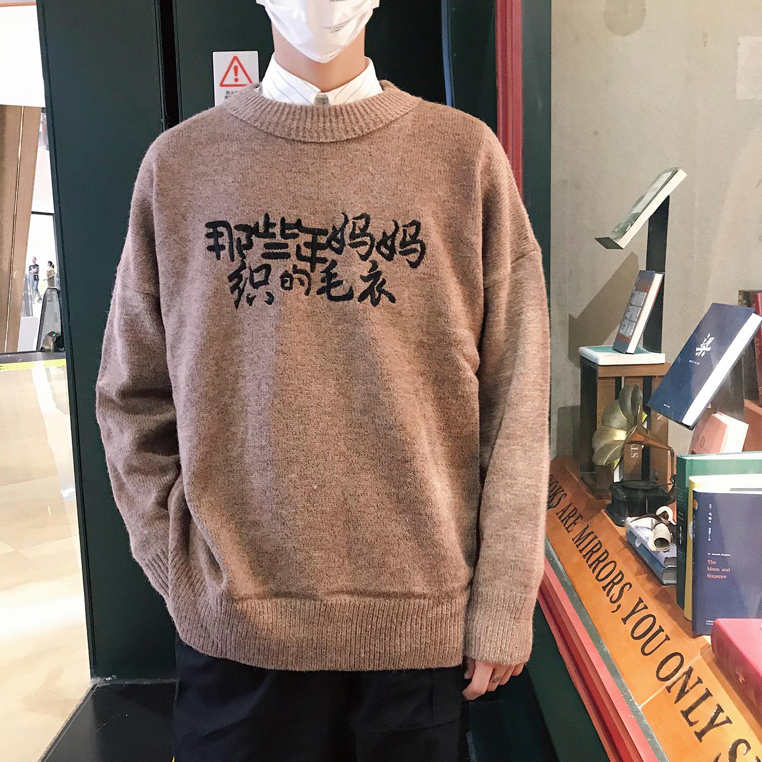 / 韓版學生港風印花秋季男士寬松毛衣潮流男裝圓領休閑情侶裝針織衫
