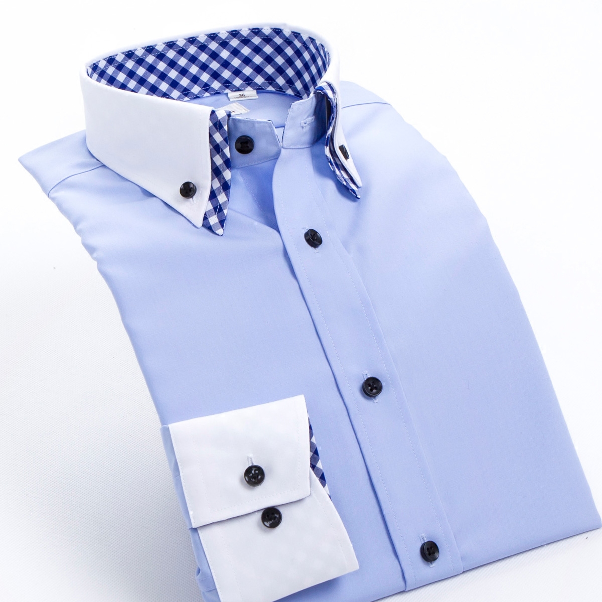 男士長袖寸衣韓版修身純棉商務藍色扣領棉免燙寸衫休閑襯衫秋季男