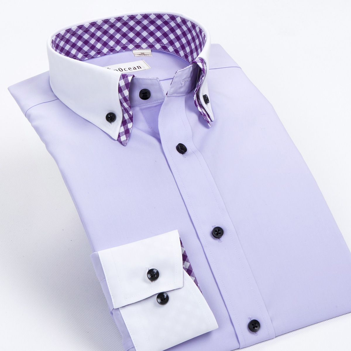 / 男士長袖寸衣韓版修身純棉商務藍色扣領棉免燙寸衫休閑襯衫秋季男