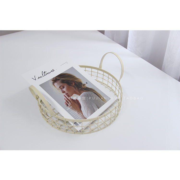 淺米黃圓形鐵藝籃