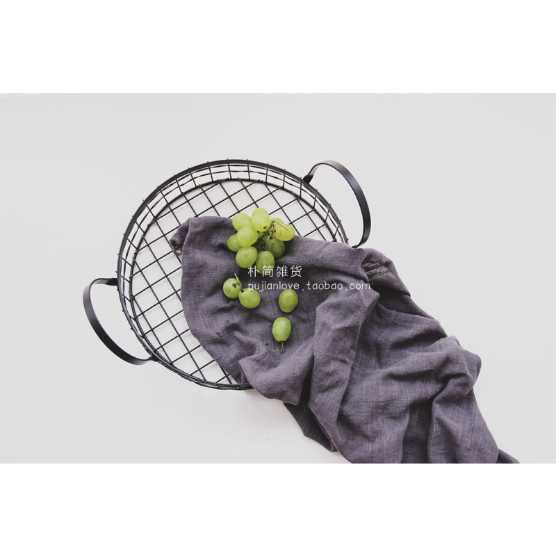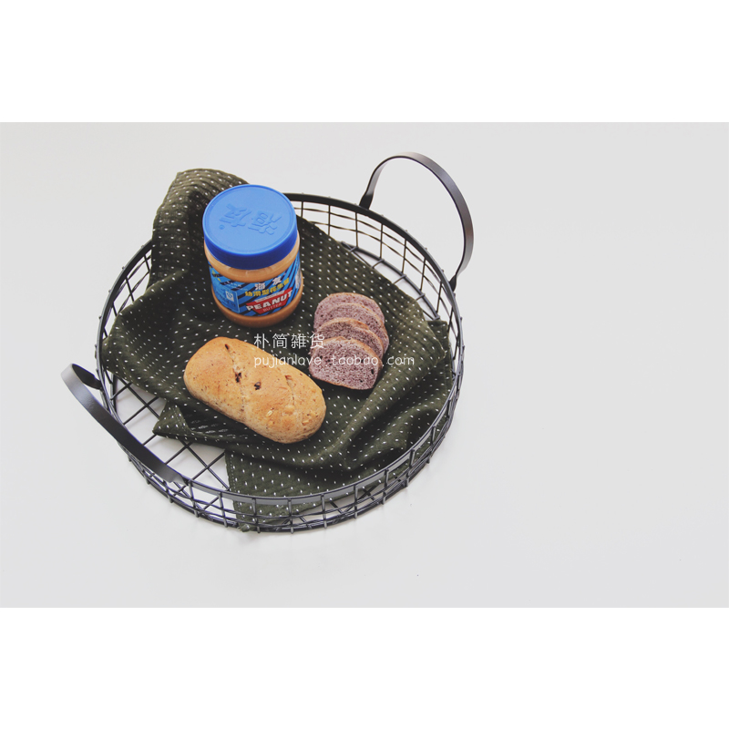 樸簡 日式復古鐵藝提手收納籃子筐桌面圓形收納置物籃水果面包籃