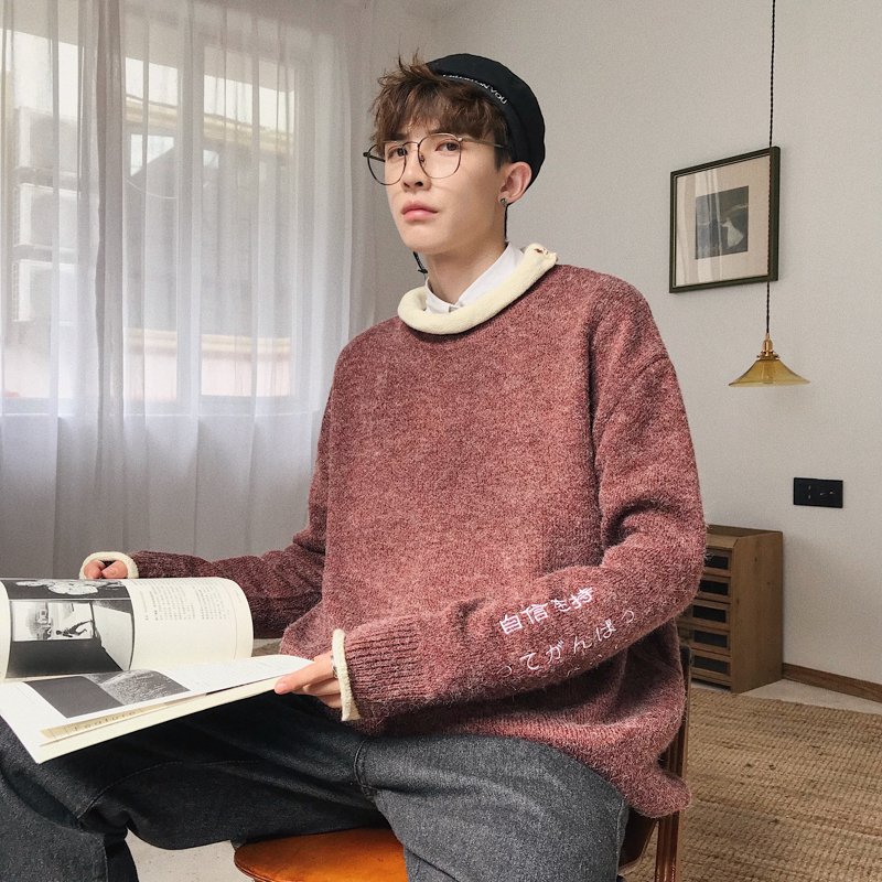 / 文藝男女店秋季韓版男士毛衣潮流圓領休閑針織衫日系寬松線衣男裝