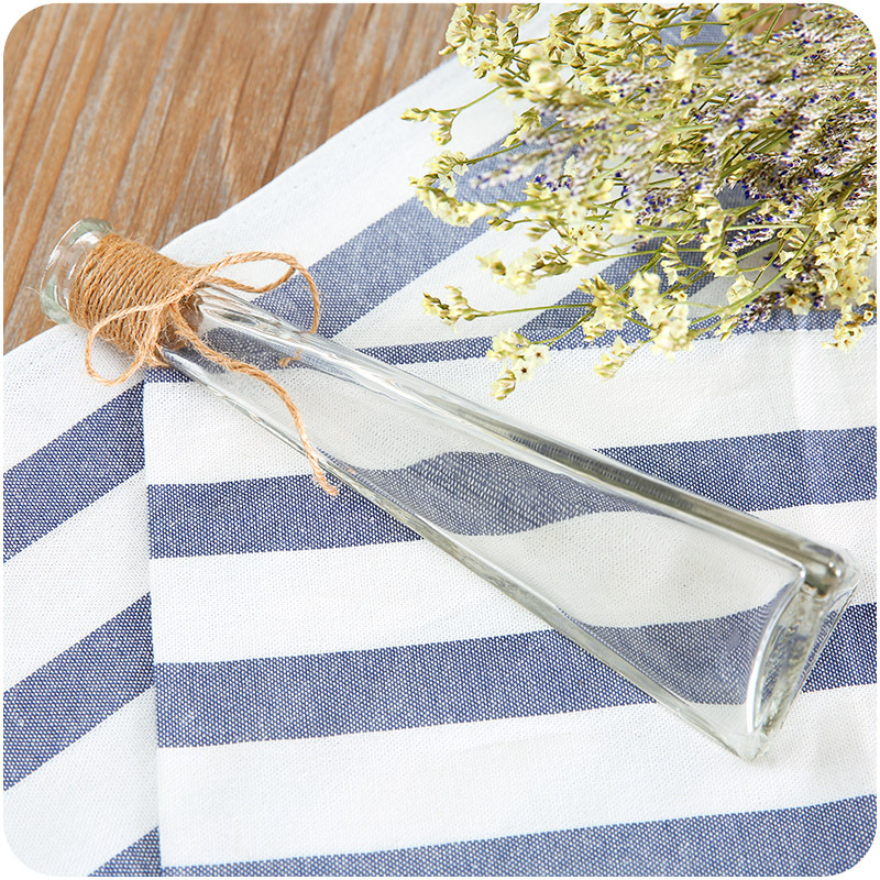 / 現代歐式玻璃透明錐形三角花瓶客廳插花裝飾栽培擺設干鮮花瓶繩子