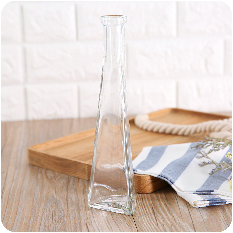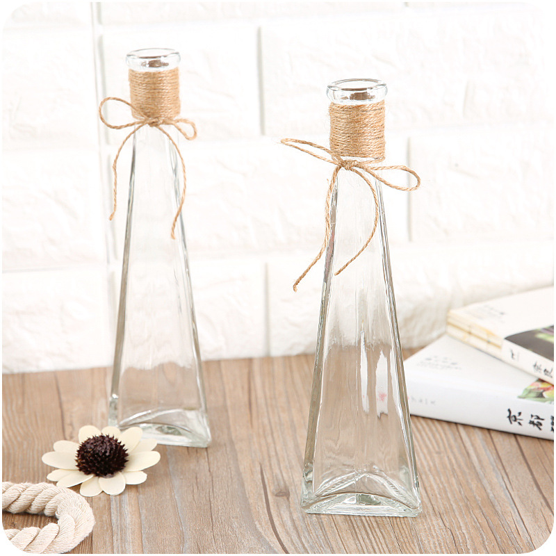 現代歐式玻璃透明錐形三角花瓶客廳插花裝飾栽培擺設干鮮花瓶繩子