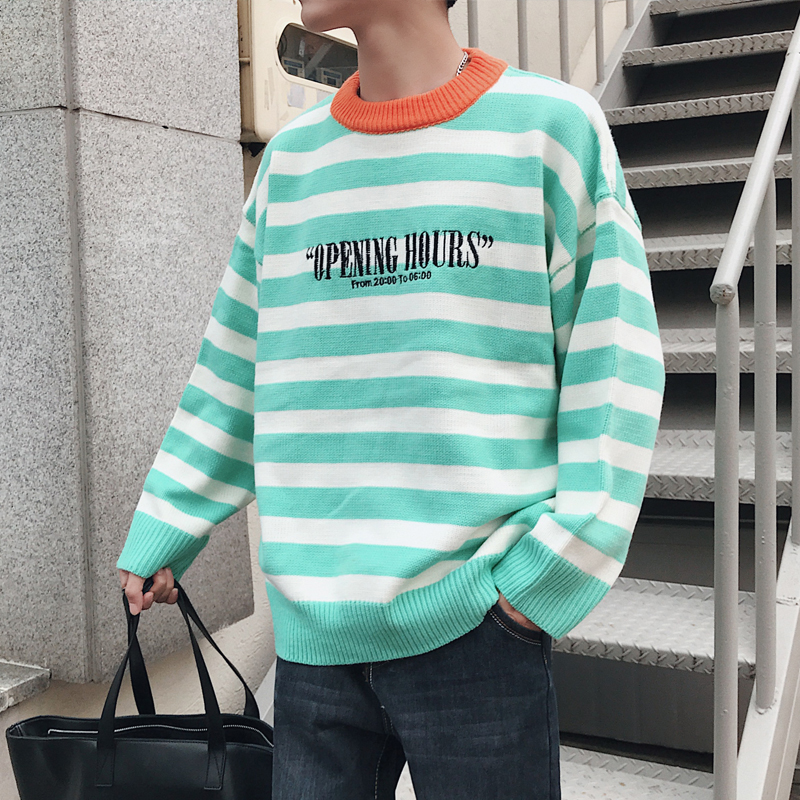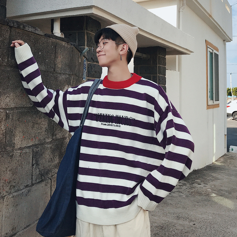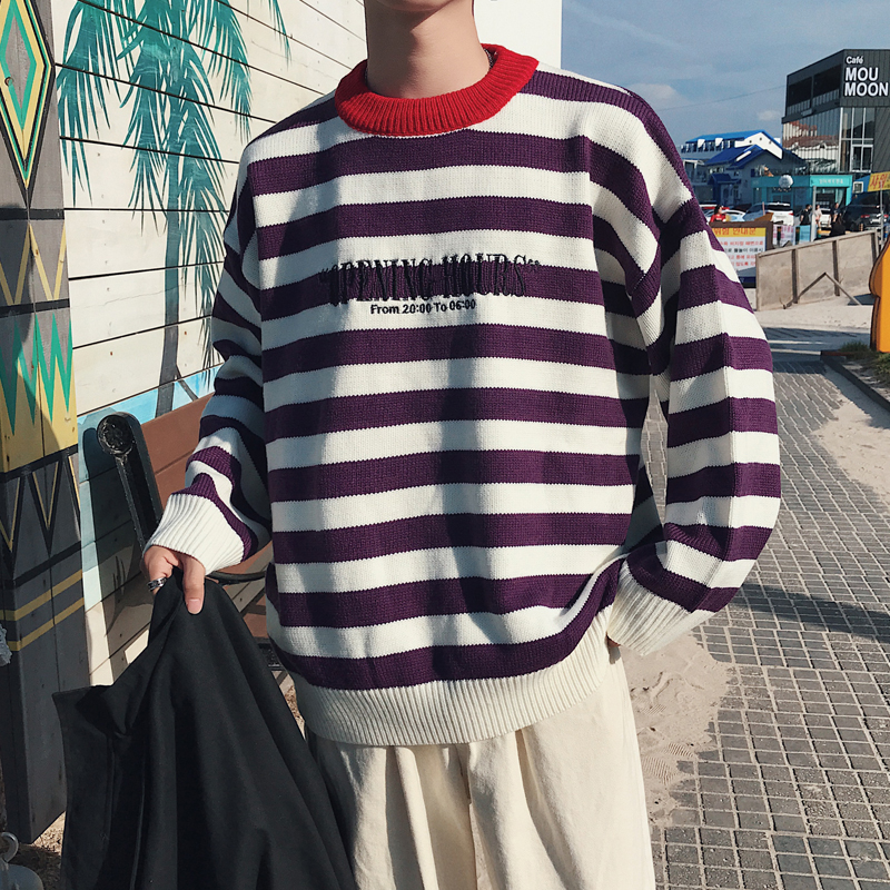 / 文藝男女店條紋毛衣韓版網紅秋冬針織衫男士潮流寬松線衫外套秋季
