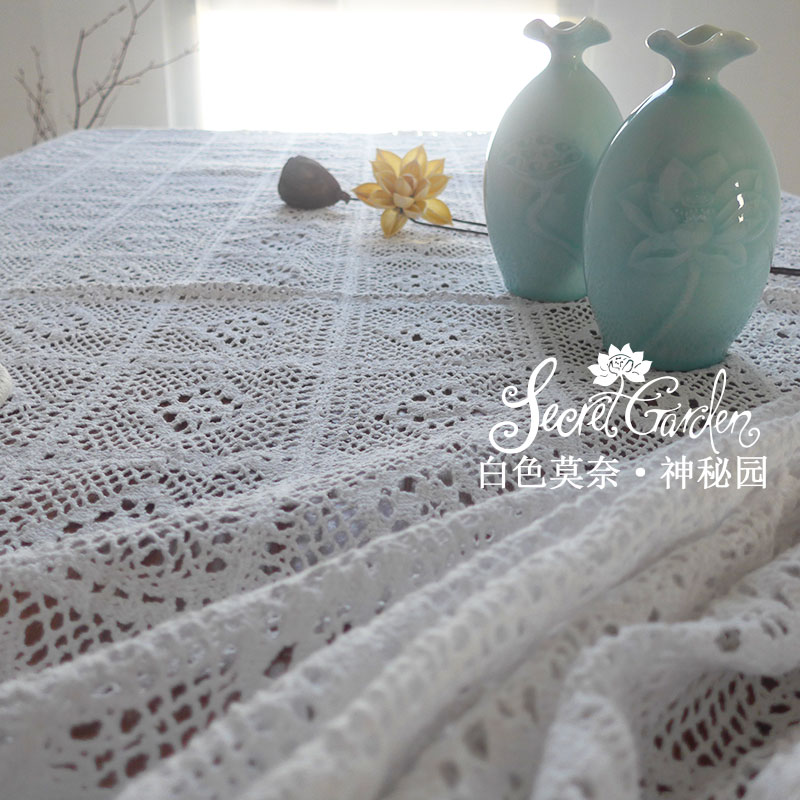 [白色莫奈]ZAKKA仿鉤針田園布藝蕾絲茶幾餐桌布鏤空蓋臺布