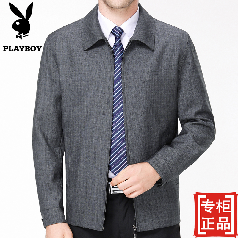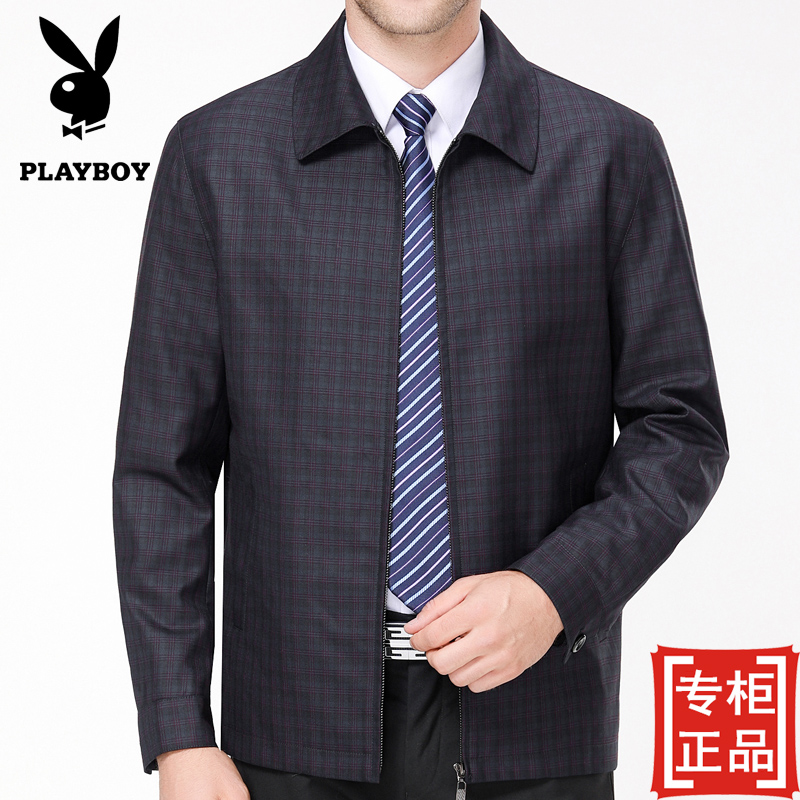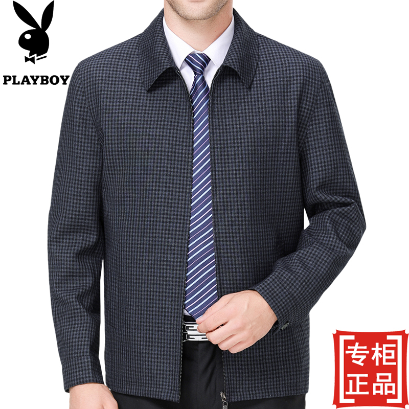 / 秋款花花公子中老年男士夾克衫商務休閑男爸爸裝翻領格子外套上衣