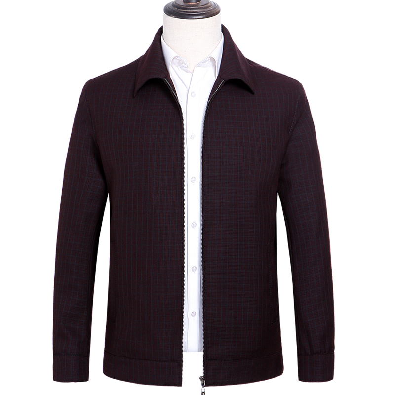 秋款花花公子中老年男士夾克衫商務休閑男爸爸裝翻領格子外套上衣