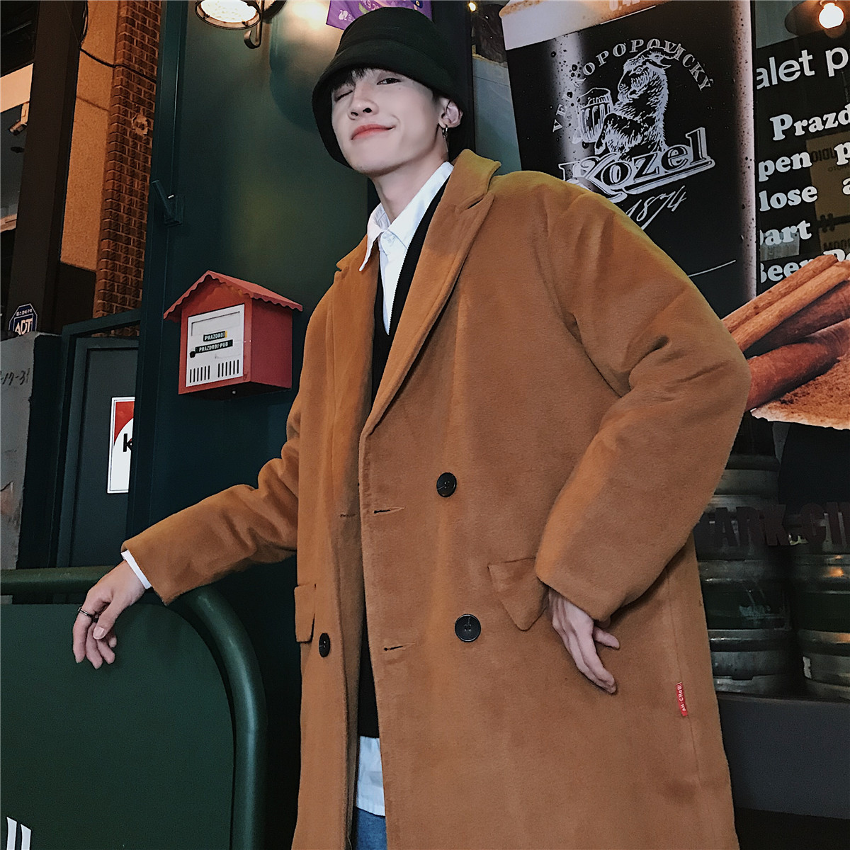 / 文藝男女店男士冬季毛呢大衣韓版潮流中長款情侶外套英倫冬裝風衣