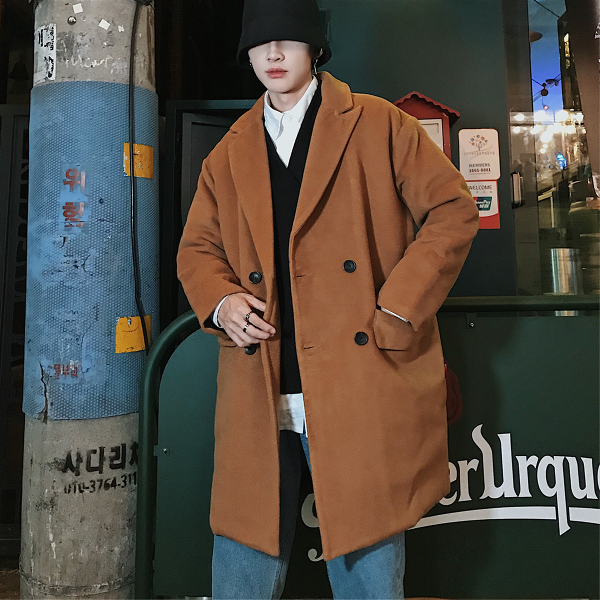 文藝男女店男士冬季毛呢大衣韓版潮流中長款情侶外套英倫冬裝風衣