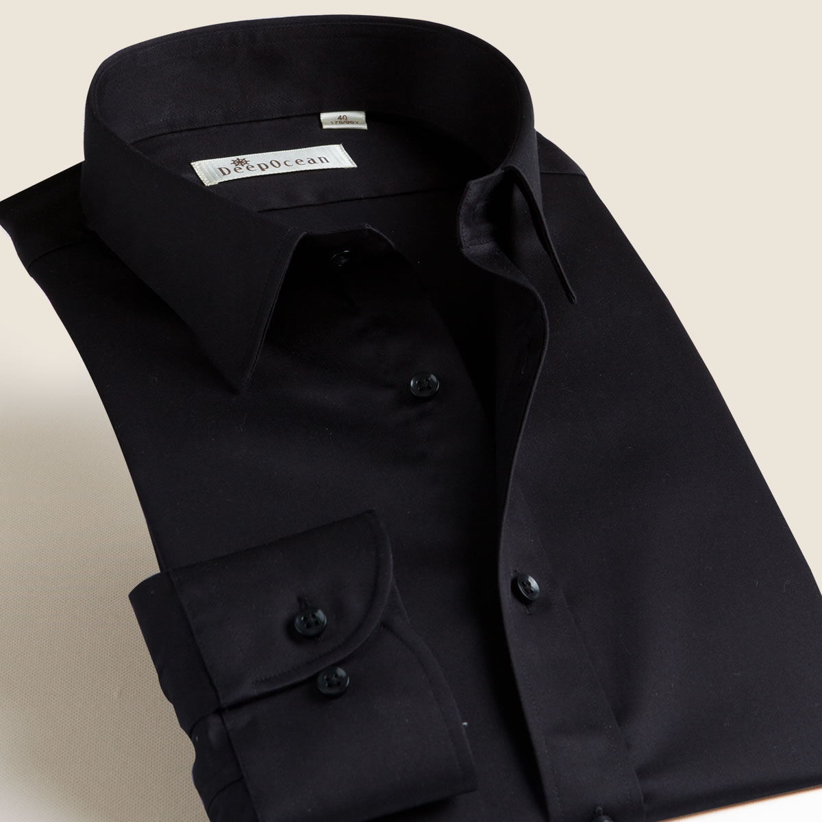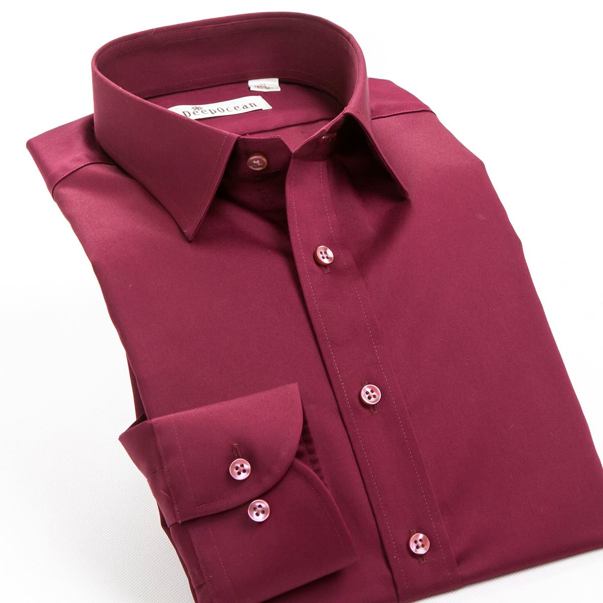 / 深海藏藍絲光棉男士小領襯衫長袖修身免燙寸衫春春款純色商務襯衣