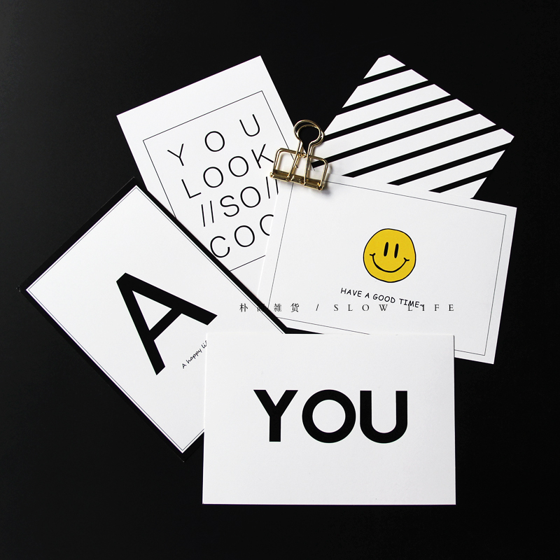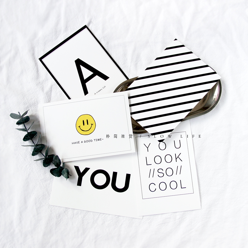 樸簡 ins北歐風簡約字母笑臉卡片 擺拍攝道具一套5張