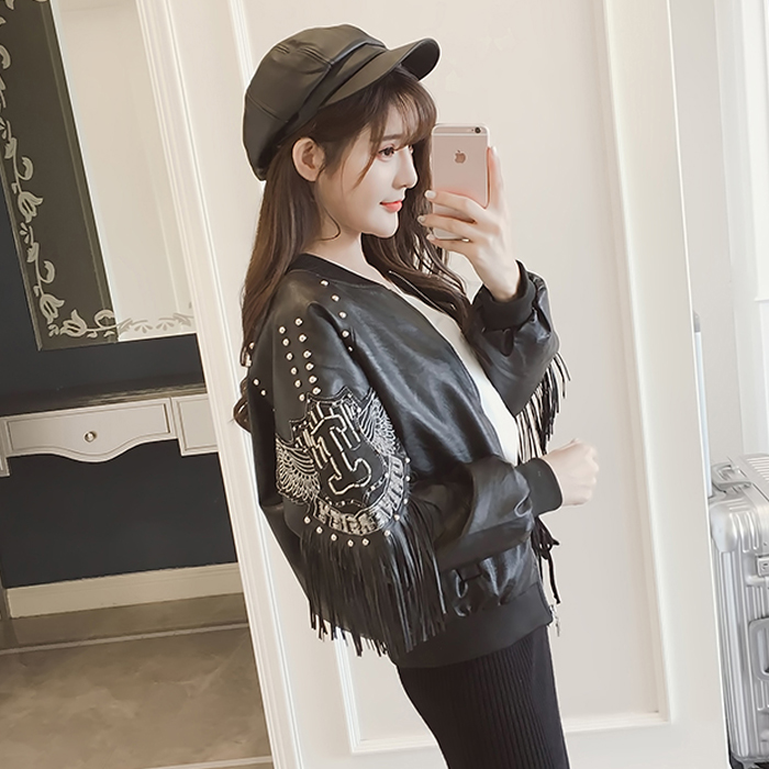 / 秋裝新款女裝韓版時尚立領流蘇夾克棒球服百搭寬松休閑皮衣短外套