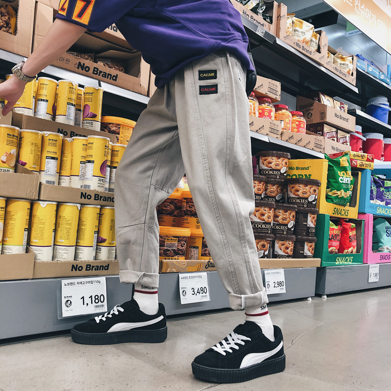 / 褲子潮流港風男士九分褲寬松休閑褲秋季男裝青少年學生長褲小直角