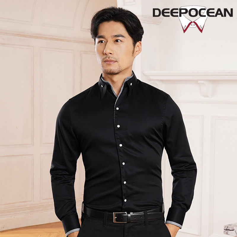 / 純色絲光棉英倫商務紳士男士V高領襯寸衫男長袖襯衣免燙修身秋季