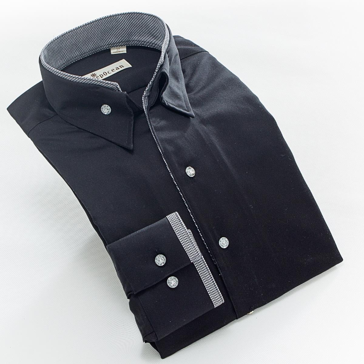 純色絲光棉英倫商務紳士男士V高領襯寸衫男長袖襯衣免燙修身秋季