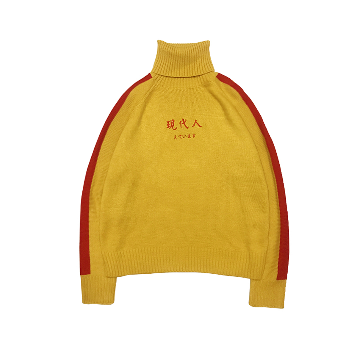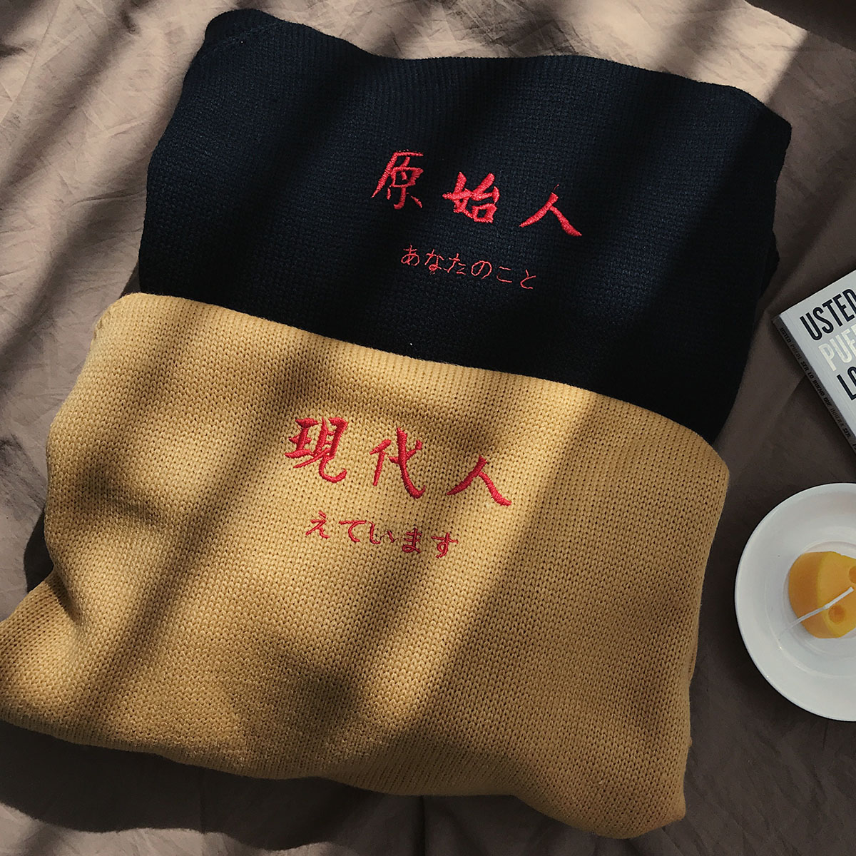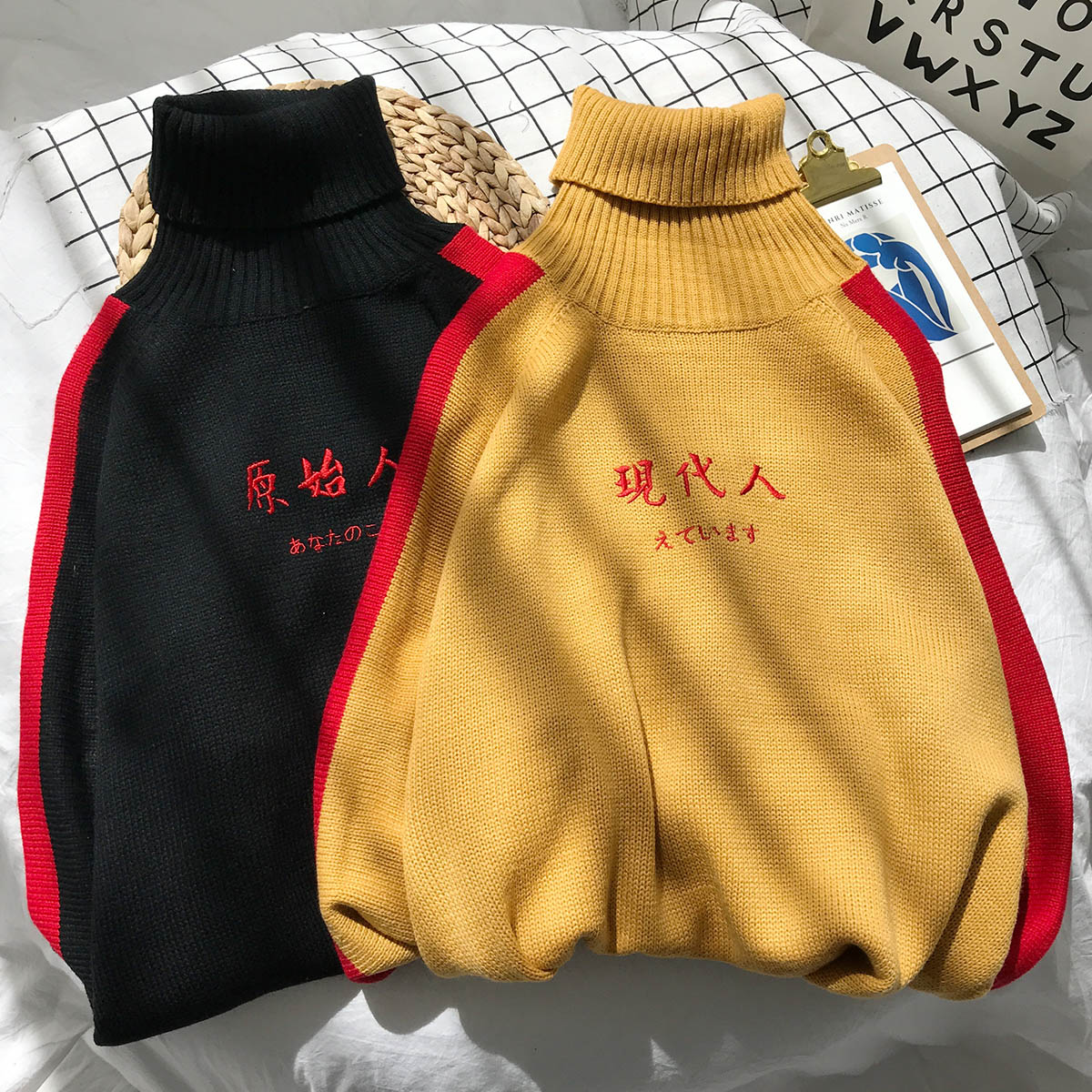 文藝男女店高領刺繡男士毛衣冬季韓版潮流外套秋季寬松個性針織衫