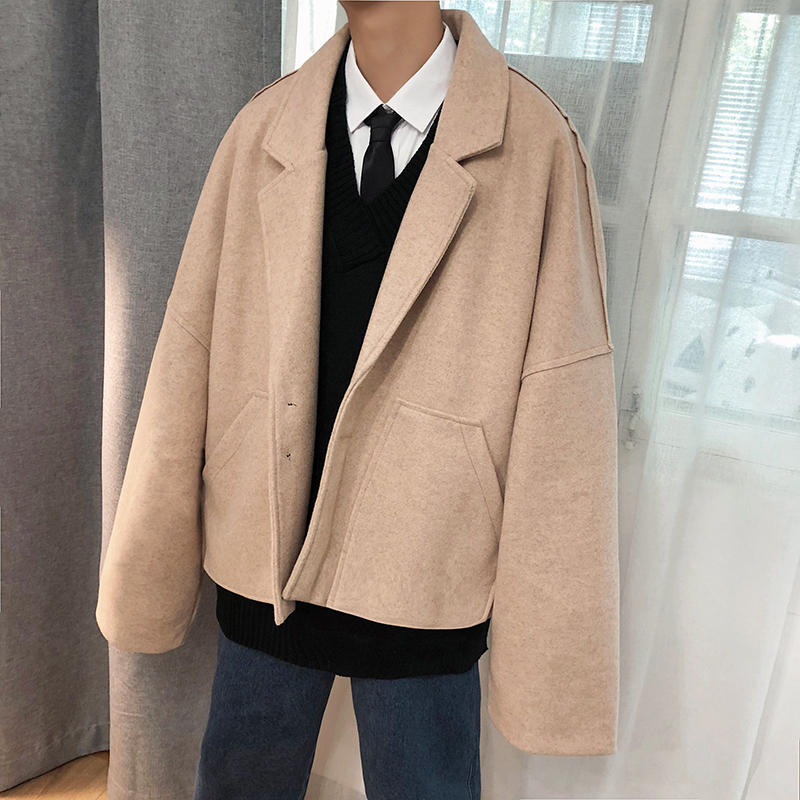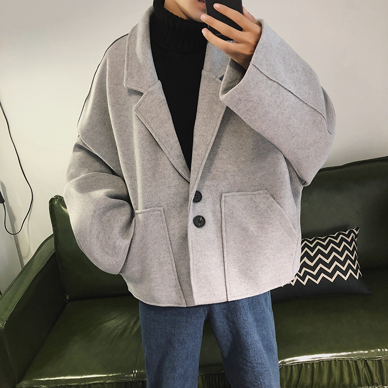 / 文藝男女店短款毛呢大衣男士韓版潮流外套呢子男裝冬季純色情侶裝