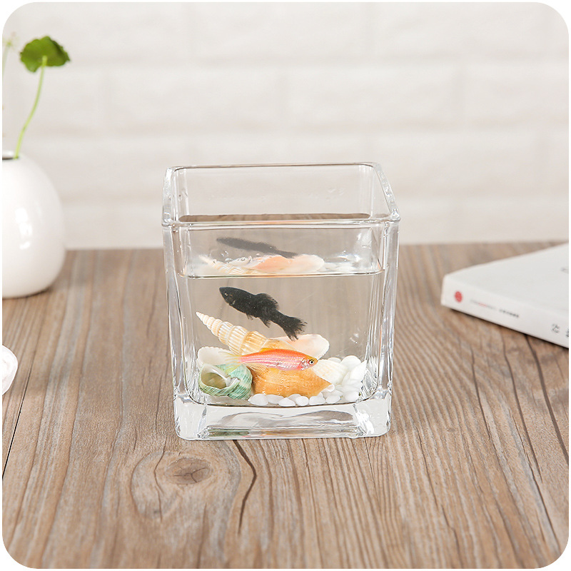 簡約歐式玻璃透明正方形小魚缸花瓶桌面擺件水培花器水養植物花盆