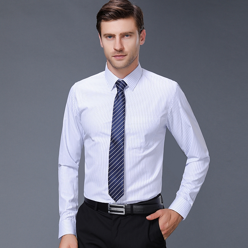 / 2018秋裝新款品牌中年男士長袖襯衫商務休閑男裝純棉條紋免燙襯衣