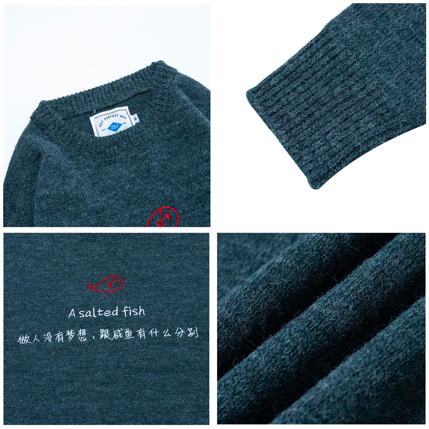 / 圓領外套衣服潮流男士復古印花寬松針織半高領毛衣原宿風男裝冬季