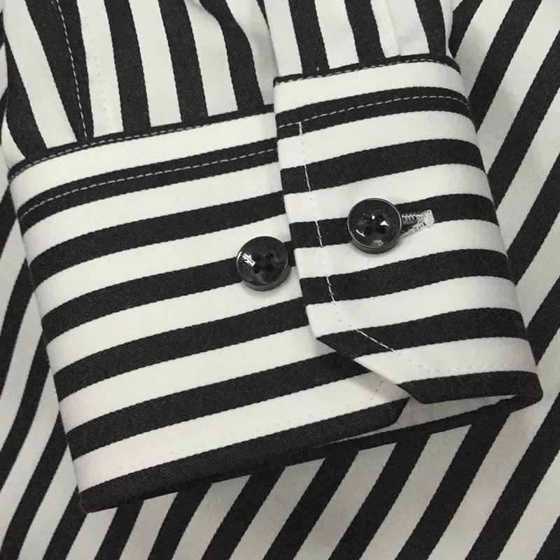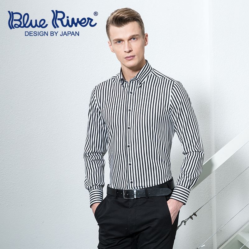 / 藍河秋新款男士黑白豎條紋襯衫男長袖修身時尚休閑純棉免燙襯衣