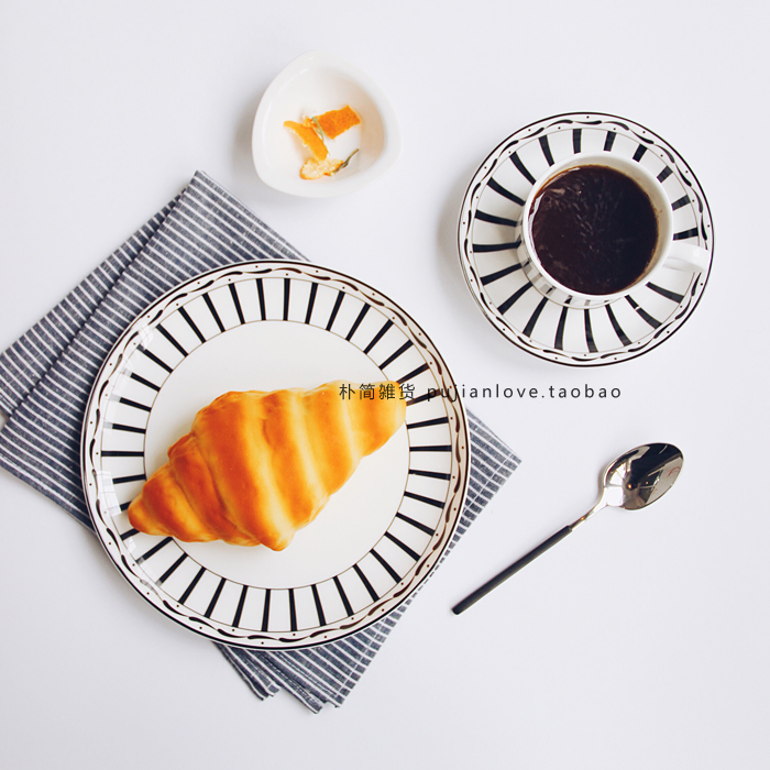 北歐風餐具 黑白經典陶瓷西餐盤牛排盤 點心盤 咖啡杯碟套裝
