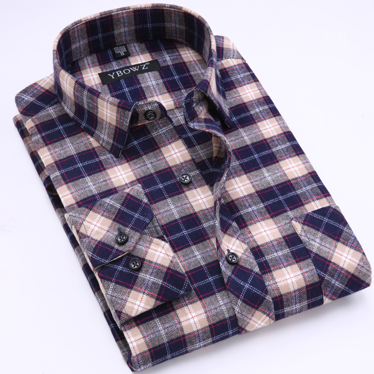 / 春款全棉爸爸裝長袖襯衫男士純棉休閑免燙中老年寬松磨毛格子襯衣