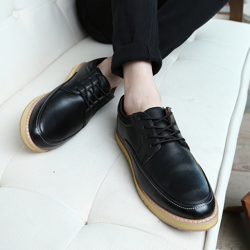 / 秋季新款韓版潮流男鞋子休閑皮鞋青少年商務簡約辦公系帶潮鞋