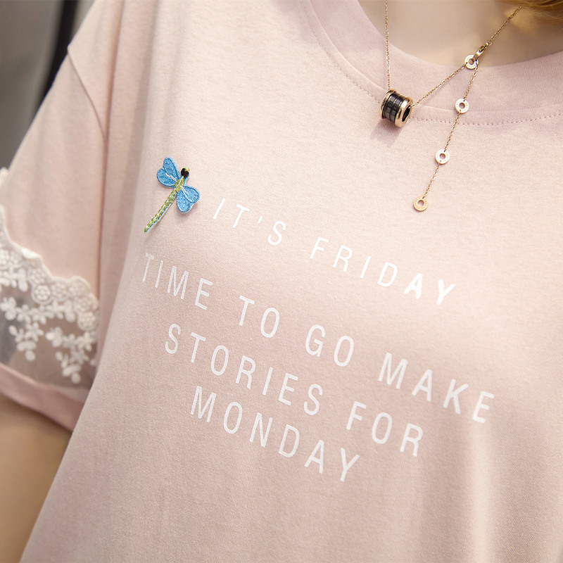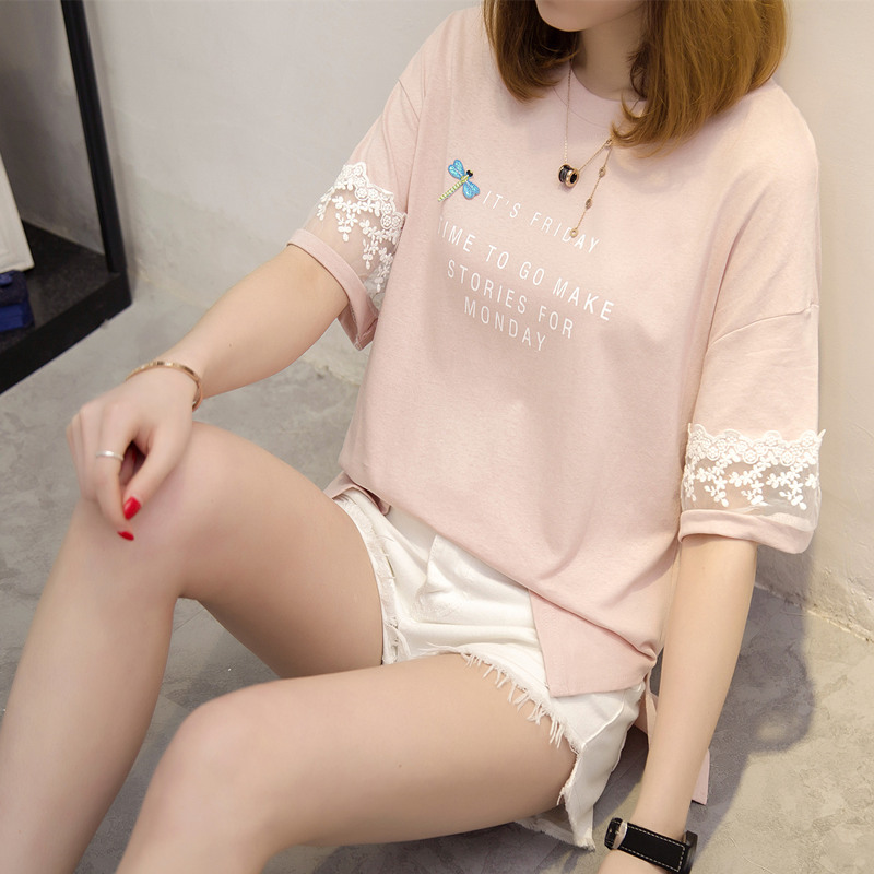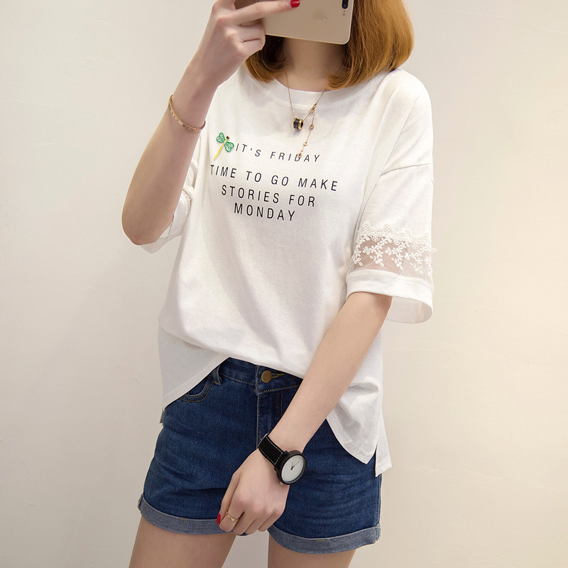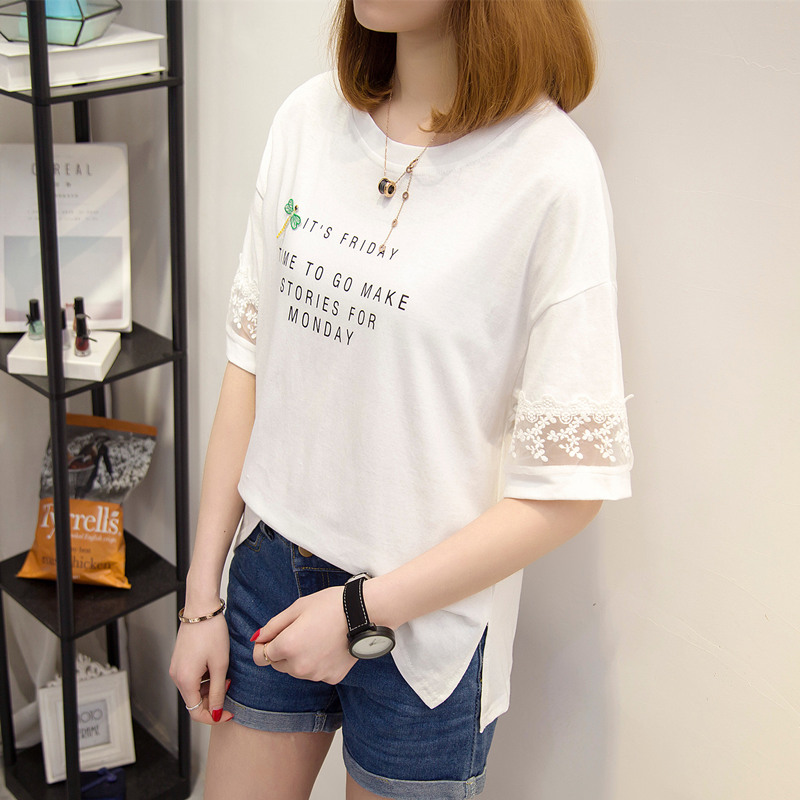 短袖t恤女寬松白色蕾絲寬松體恤衫韓版學生百搭上衣女夏新款